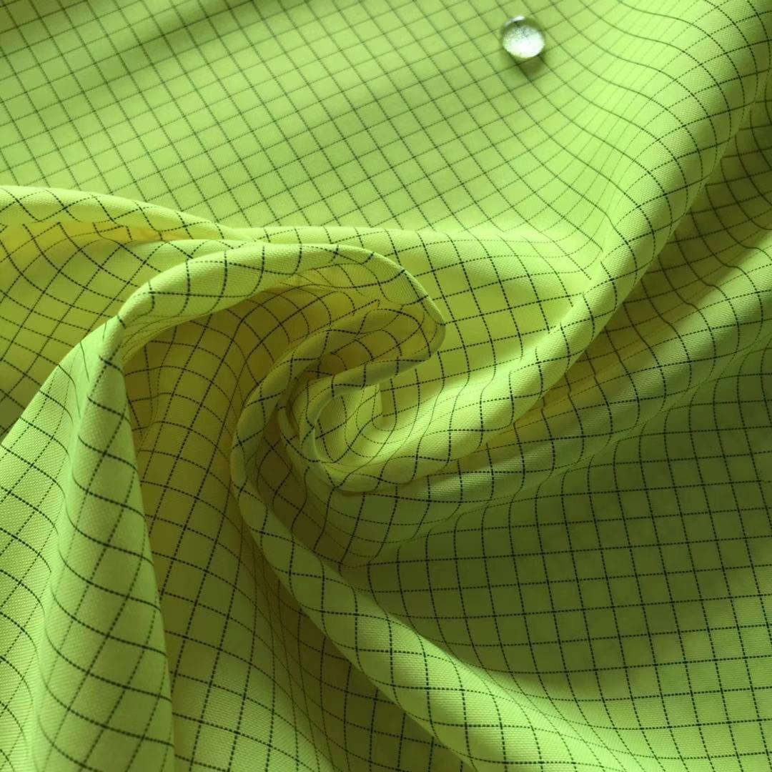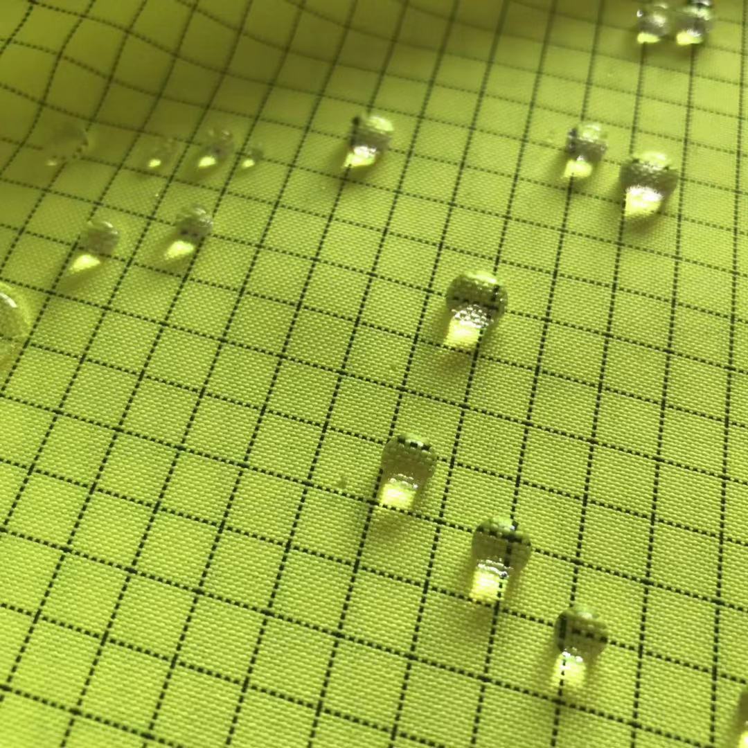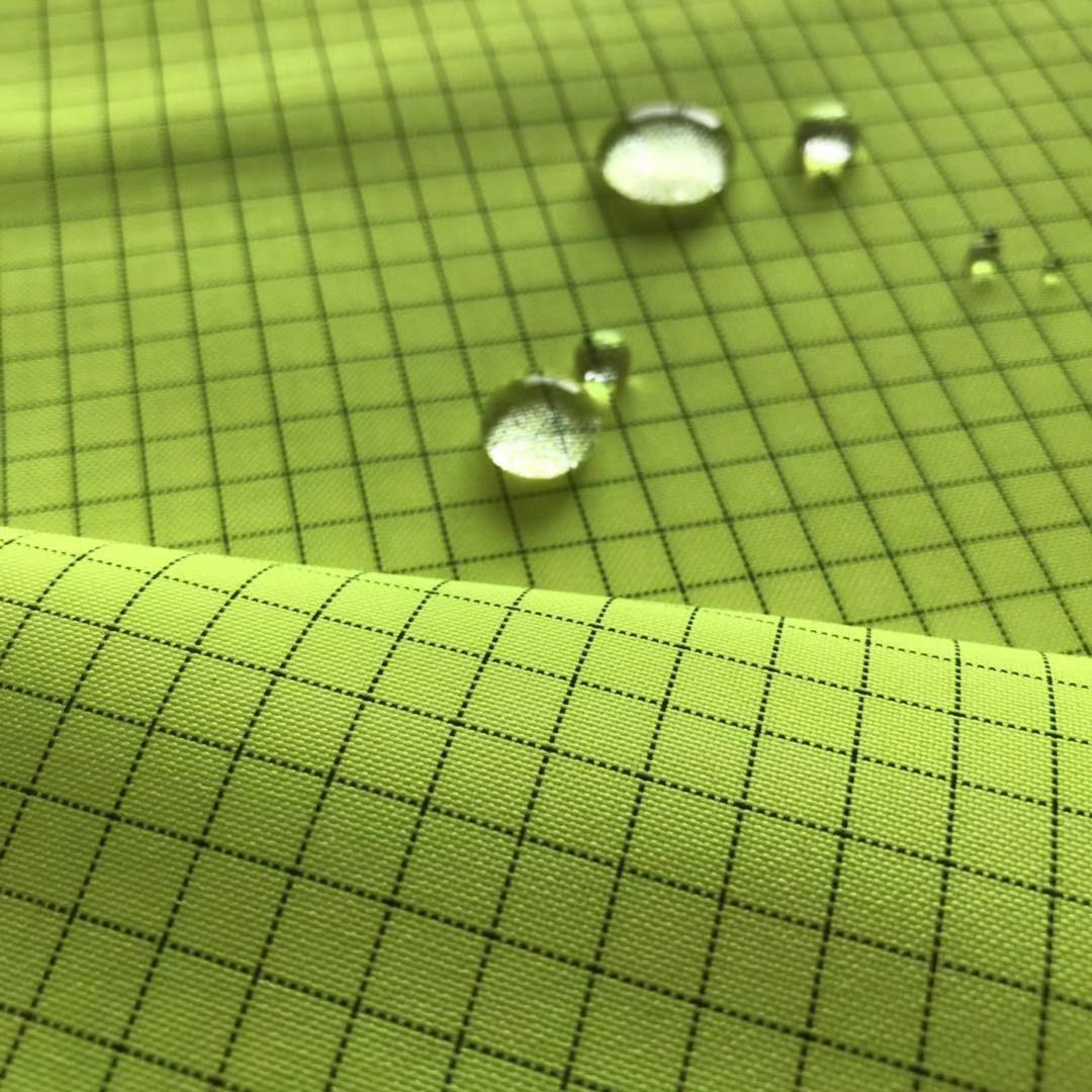 涤纶300D抗静电牛津布,经纬织入碳纤维纱线,表面电阻可达10^6欧姆。